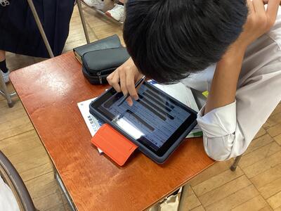 2,3年生は、来週の定期テストに向けて、自学に取り組んでいました。エリアに置かれているプリントに取り組む人、教科のワークを進める人、タブレットで学習の振り返りをする人など、それぞれの個に応じての学習を進めていました。とても集中して取り組んでおりました。