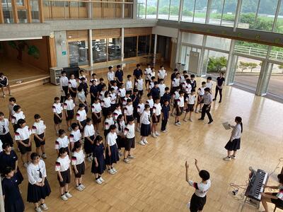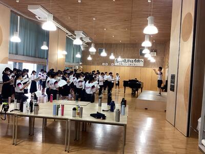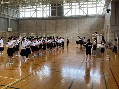 クラスターごとに3年生を中心に、よりよいメロディーを目指して励んでいます。