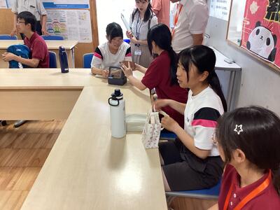 お昼は、中国の生徒たちと本校の中央委員の生徒たちが交流しながら給食を食べました。はじめは会話もまばらでしたが、すぐに打ち解け、至民中の生徒はタブレットを片手に通訳アプリを使い、楽しいひとときを過ごしていました。最後は、仲良くなった生徒同士、写真を撮り、楽しい会が終わりました。至民中の生徒からは、「今度は自分たちが中国を訪問したい。」「もう少し時間がほしかった。」などの声が聞かれました。事前の準備から、とても充実した活動ができていたからだと思います。