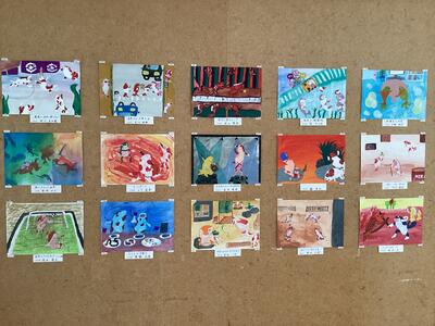 アトリエ(美術室)前の掲示物が新しく変わっていました。