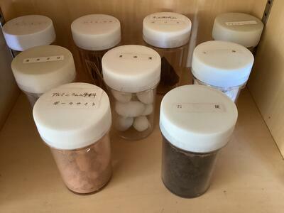 社会科エリア内にある資料コーナーを整理し、見やすくなるようにリニューアルしました。このコーナーにはカカオ豆などの植物やアルミニウムの原料であるボーキサイトなどの鉱石、さら砂漠の砂などの土壌のほんものをみることができます。