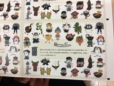 昨年、本校の3年生がデザインしたそばのキャラクターのイラストが、越前市の蕎麦屋さんの「宗近」さんが採用に採用していただき、梱包の側面に貼るシールになりました。
