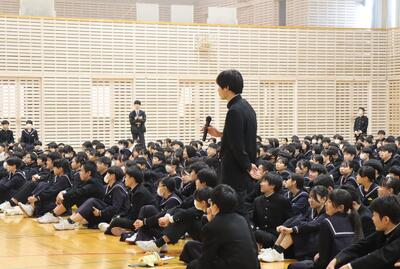 今後の入試の手続きや受験に取り組む心得など、3年生の進路担当者から話がありました。