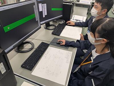 「盟友技研」では、パソコンを使って3DCADによる立体図の作成に挑戦しました。