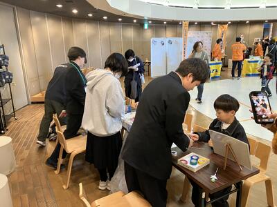 大反響で、小さなお子さんが次から次へとブースにきて、科学情報部の生徒たちは大忙しでした。